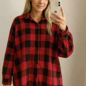 Kaşmir Oduncu Oversize Gömlek Ceket – Kırmızı&Siyah