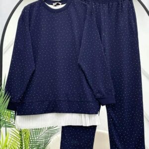 Kristal Taş detaylı modal kumaş ikili takım- Lacivert Renk