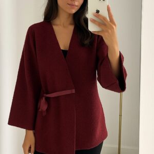 Bağlamalı Buklet Ceket- Bordo Renk