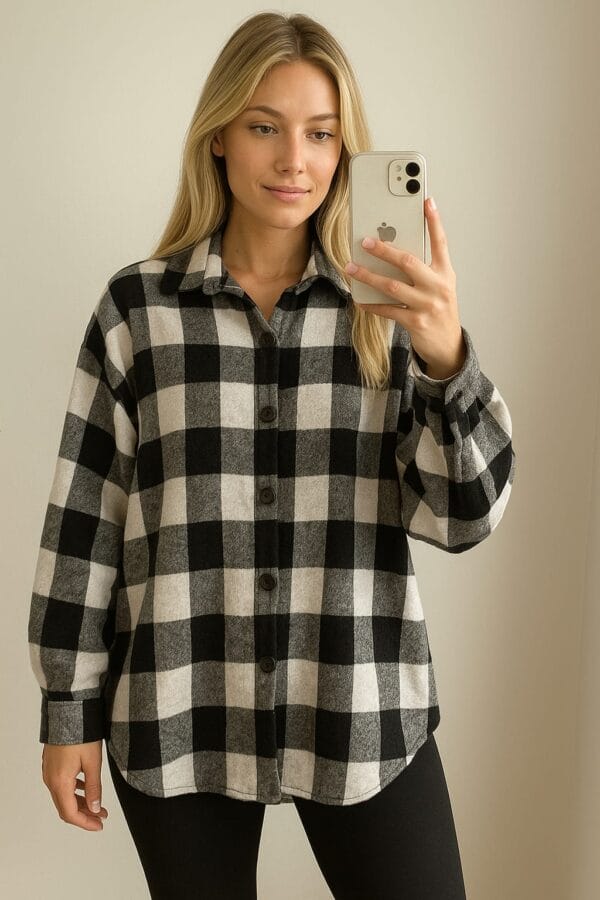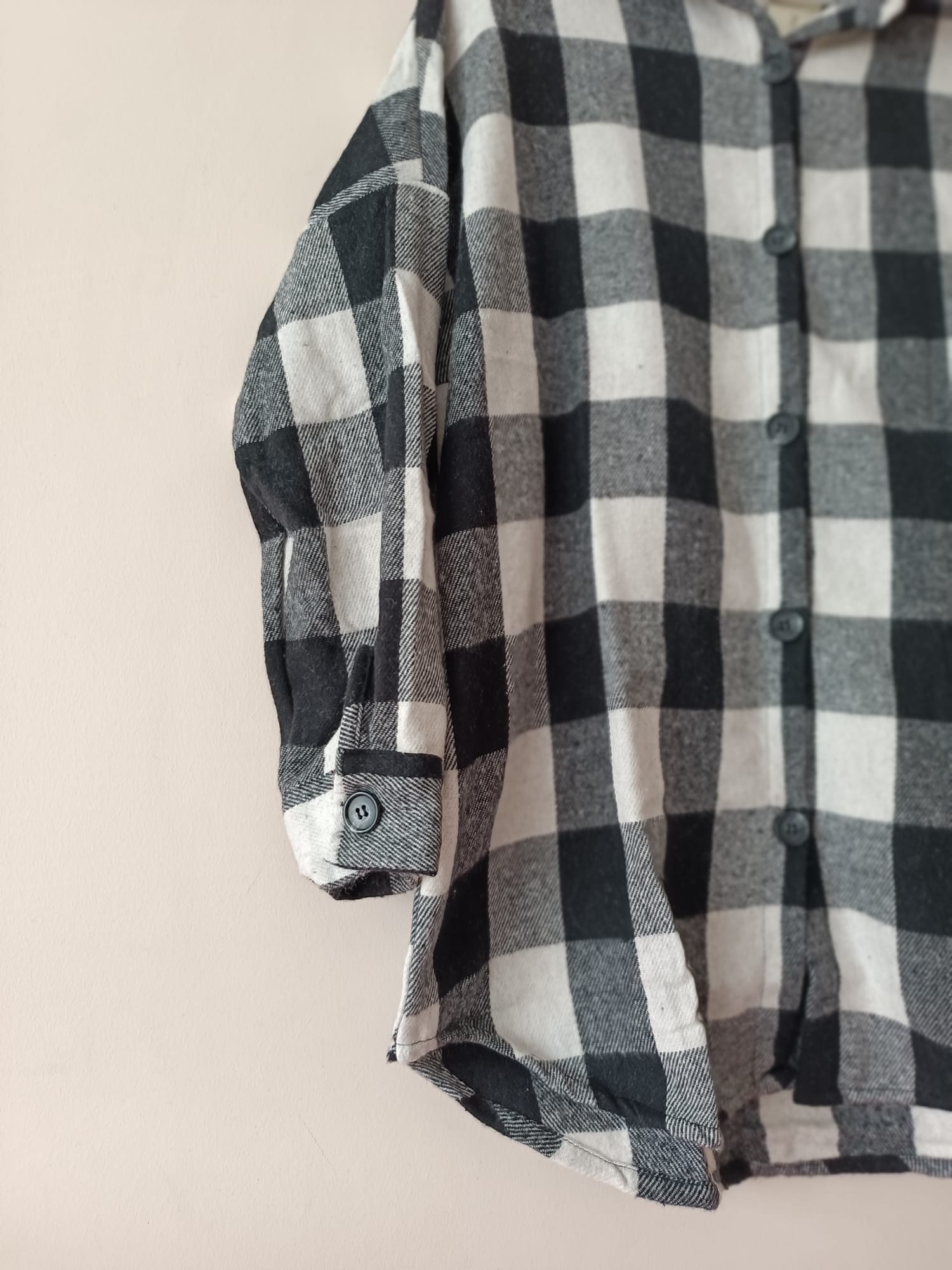 -Chanel Kumaş Dokulu Çift Cepli Oversize Gömlek