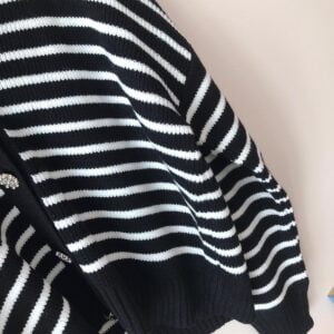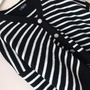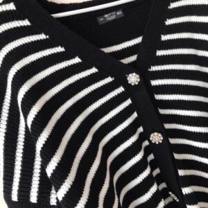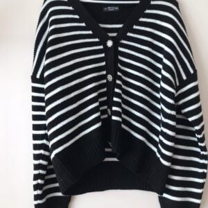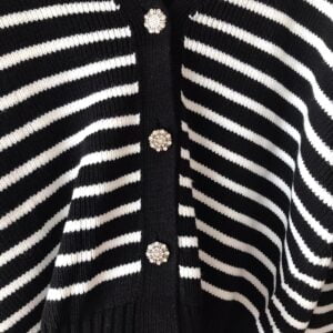 Be the first to review “Siyah Beyaz Çizgili Desenli Düğmeli Hırka”