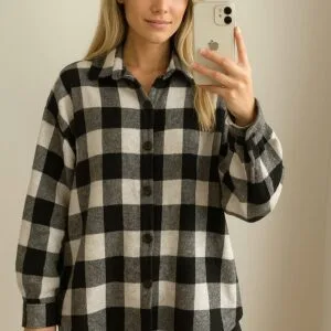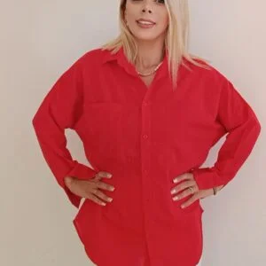 -Chanel Kumaş Dokulu Çift Cepli Oversize Gömlek